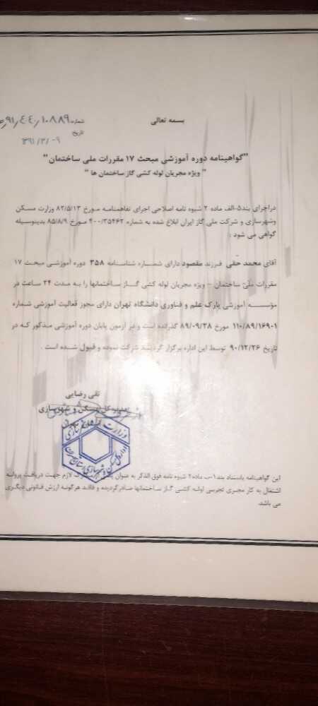 با عرض سلام بنده 28 سال هست که در رشته تاسیسات گاز به خصوص لوله کشی گاز فعالیت میکنم و اجناسی که استفاده میکنم همه استاندارد و مورد تایید نظام مهندسی میباشد و نسبت به کارم دقت عمل بالایی دارم.همچنین ر ضایت مشتری از کار ما بسیار مهم است. بیشتر