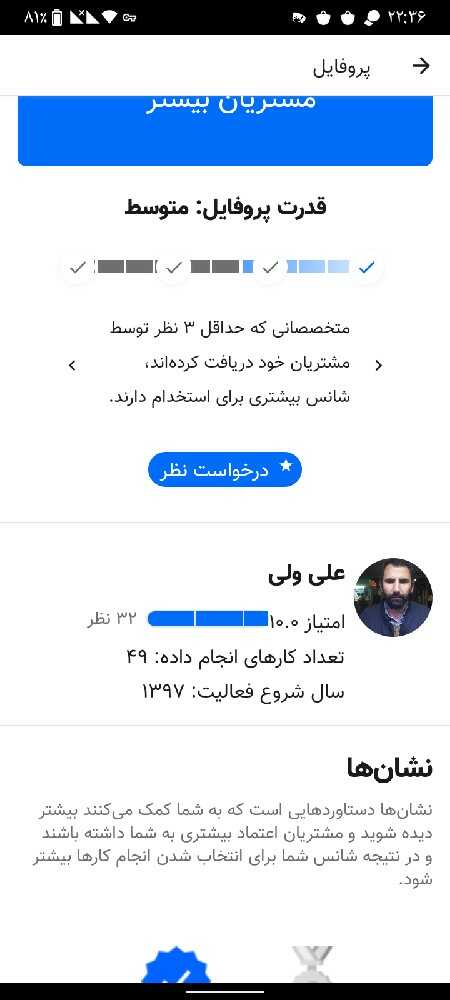 اطلاعات درج شده در پروفایل هر فرد، توسط خود او تکمیل شده و خدمت از ما صحت این اطلاعات را تأیید نمی‌کند. همچنین، وجود نشان‌ها یا مدارک در پروفایل افراد به معنای تضمین کیفیت خدمات، رفتار یا سایر جزئیات ارائه شده توسط ایشان نیست.
