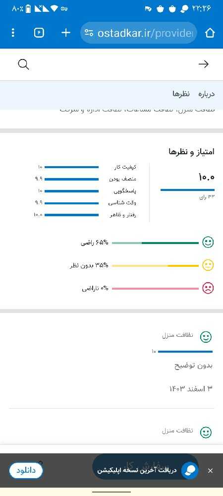 پنج سال سابقه نظافت منازل دارم وتلاشم روجهت جلب رضایت مشتری جهت جلب سفارشهای بعدی انجام میدم