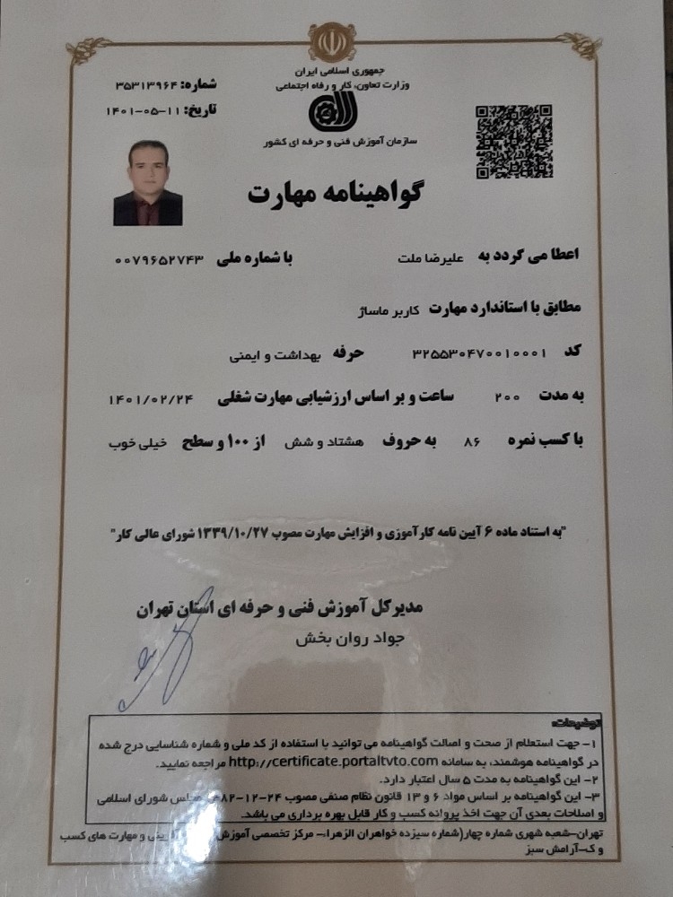 خدمت از ما احراز هویت شده خدمت از ما متخصص (دارای گواهی مهارت)