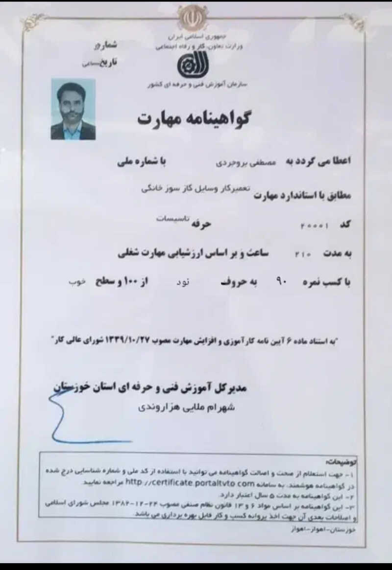 مشتریان بابت رفتار محترمانه ، کیفیت انجام کار ، دستمزد منصفانه ، خوش قولی ، مهارت و تخصص به مصطفی بروجردی امتیاز مثبت داده اند.