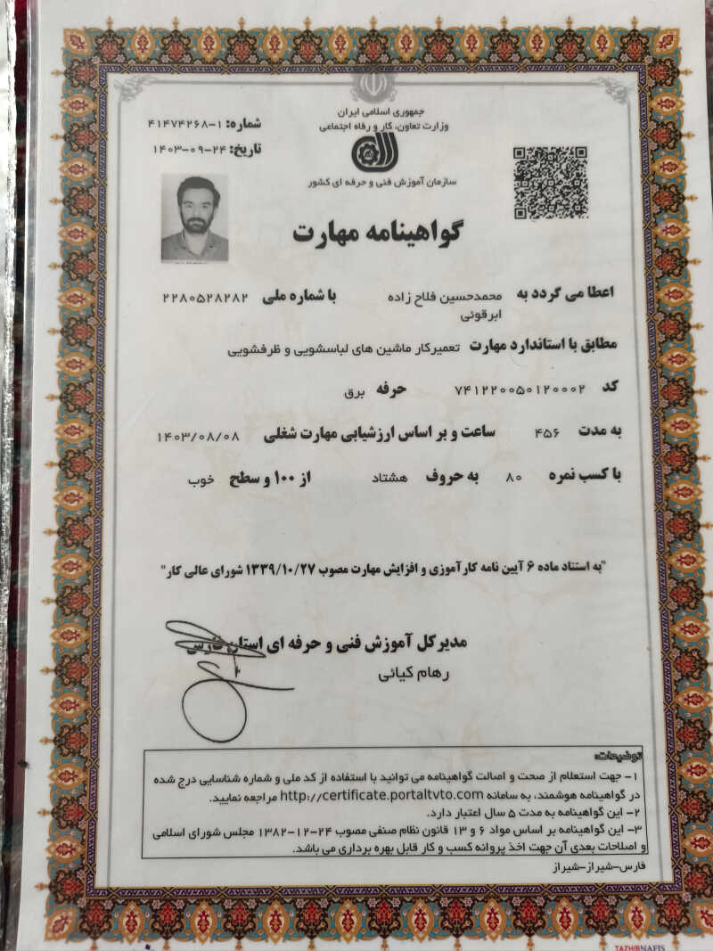 خدمت از ما احراز هویت شده خدمت از ما متخصص (دارای گواهی مهارت)