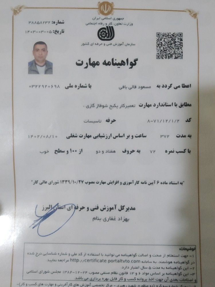 خدمت از ما احراز هویت شده خدمت از ما متخصص (دارای گواهی مهارت)