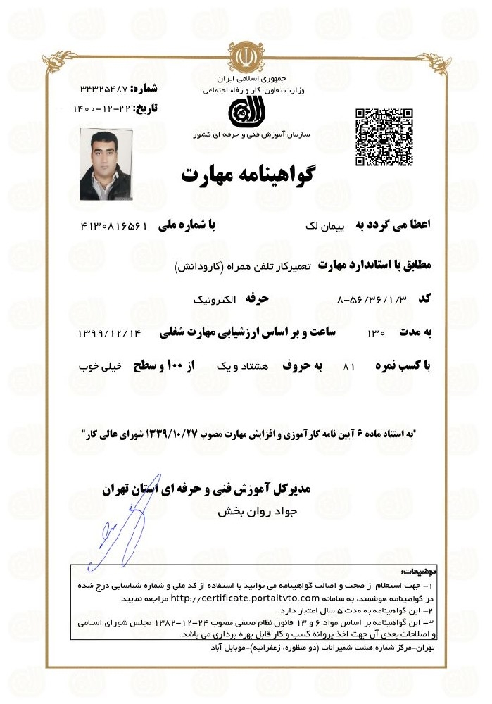 خدمت از ما احراز هویت شده خدمت از ما متخصص (دارای گواهی مهارت)