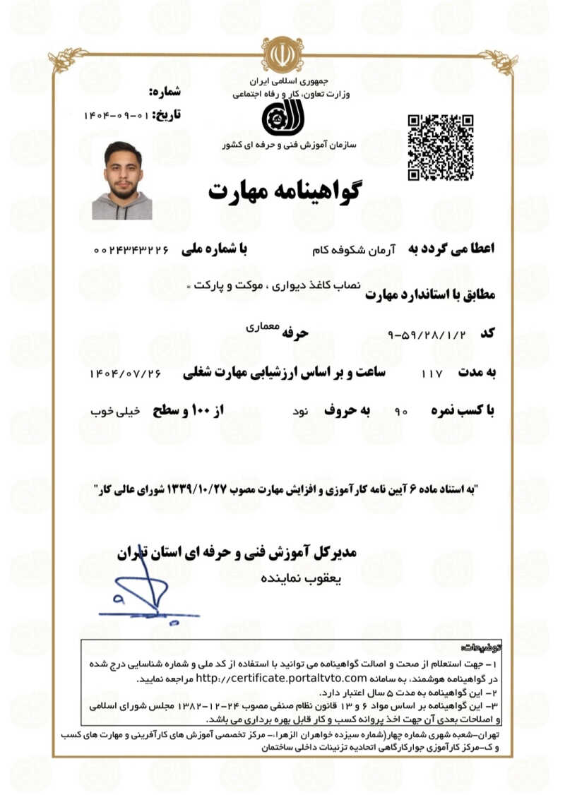 خدمت از ما احراز هویت شده خدمت از ما متخصص (دارای گواهی مهارت)