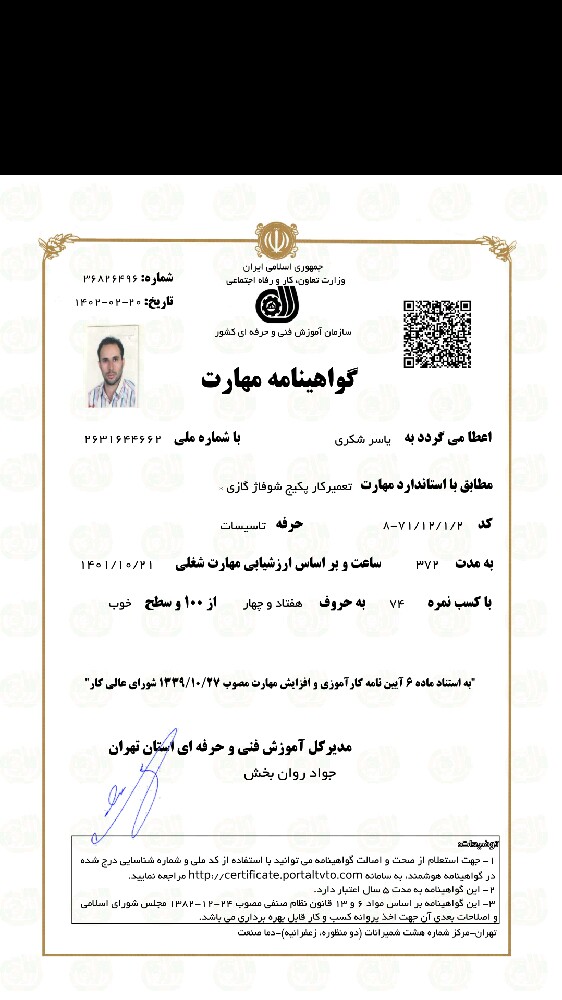 خدمت از ما احراز هویت شده خدمت از ما متخصص (دارای گواهی مهارت)