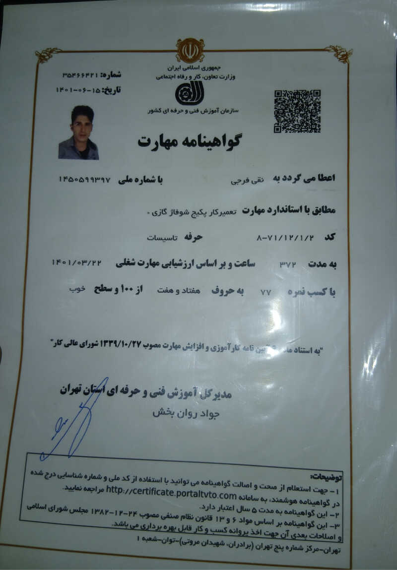 خدمت از ما احراز هویت شده خدمت از ما متخصص (دارای گواهی مهارت)