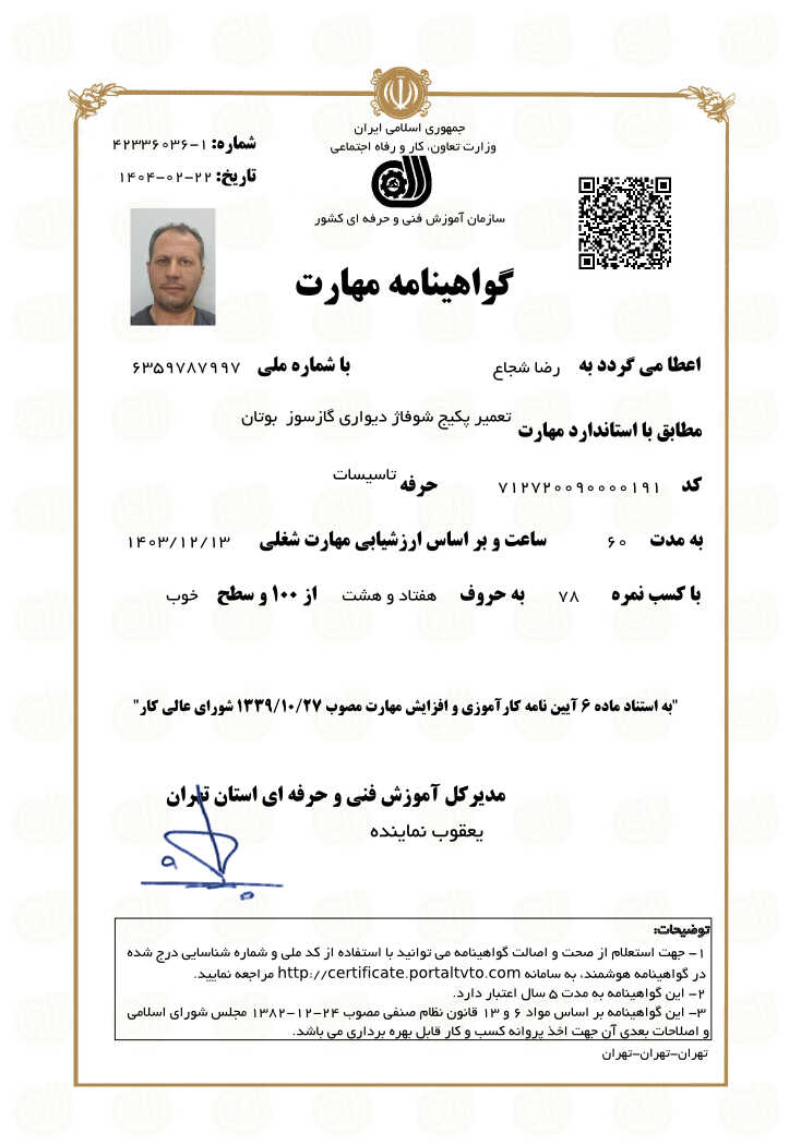 خدمت از ما احراز هویت شده خدمت از ما متخصص (دارای گواهی مهارت)