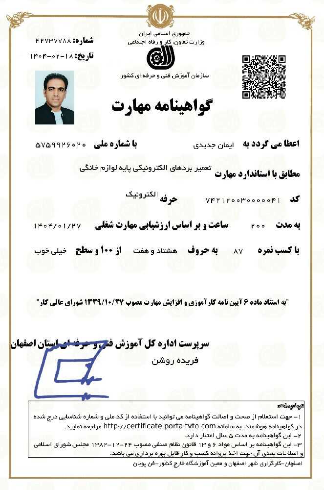 خدمت از ما احراز هویت شده خدمت از ما متخصص (دارای گواهی مهارت)