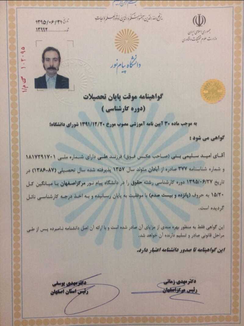 دکترای تخصصی حقوق، با 17 سال سابقه فعالیت، رتبه اول علمی دانشگاه تهران، متخصص در امور قراردادها، لایحه نویسی و تنظیم راهبرد دفاعی در دعاوی بین المللی، معاون مرکز حقوقی و داوری بین المللی