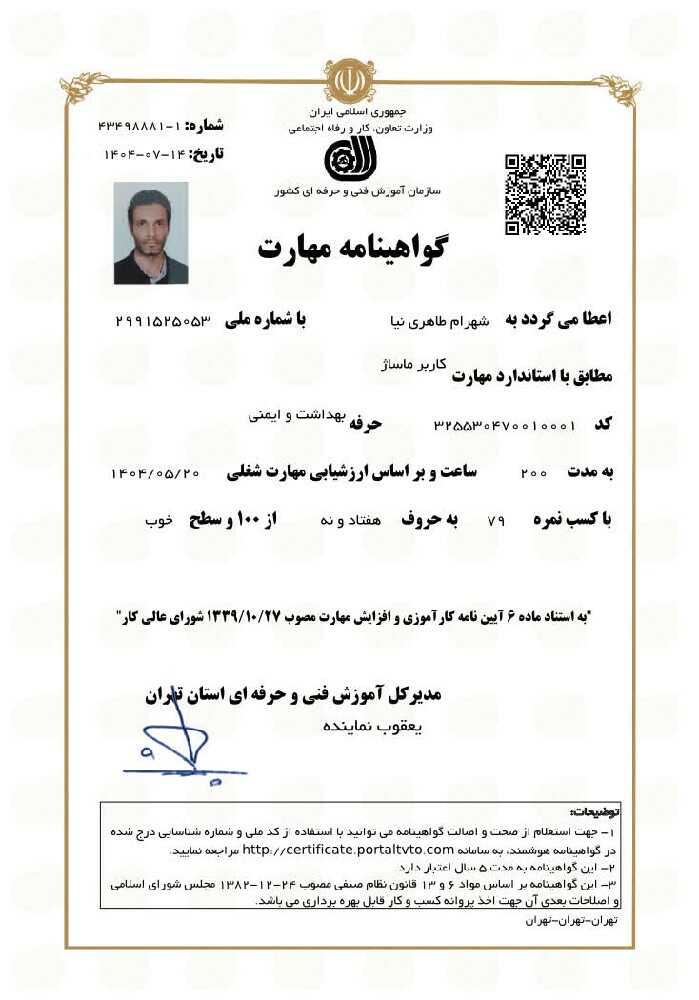 خدمت از ما احراز هویت شده خدمت از ما متخصص (دارای گواهی مهارت)