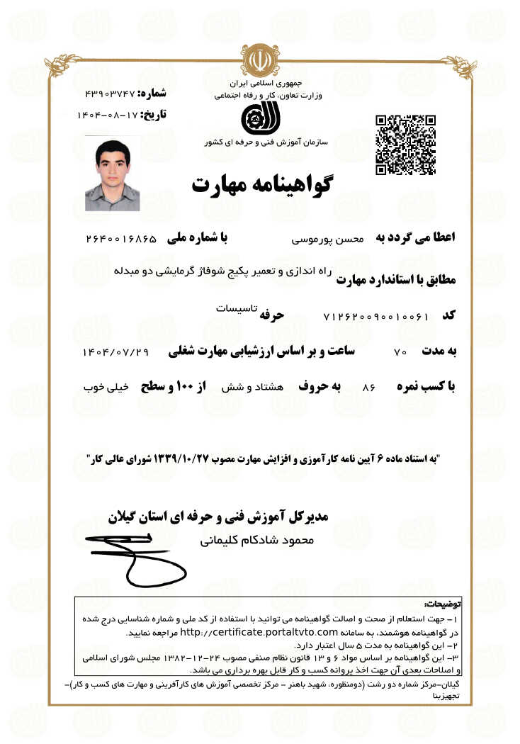 خدمت از ما احراز هویت شده خدمت از ما متخصص (دارای گواهی مهارت)