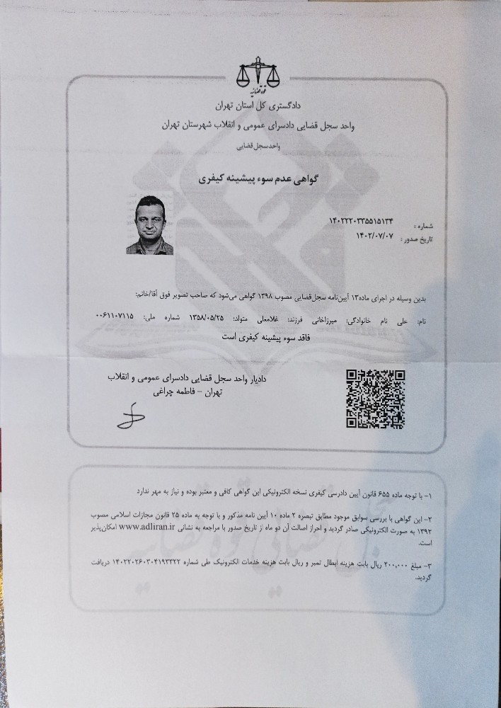 مطابقت کد ملی و شماره موبایل این متخصص با استعلام از سامانه شاهکار تایید شده است.