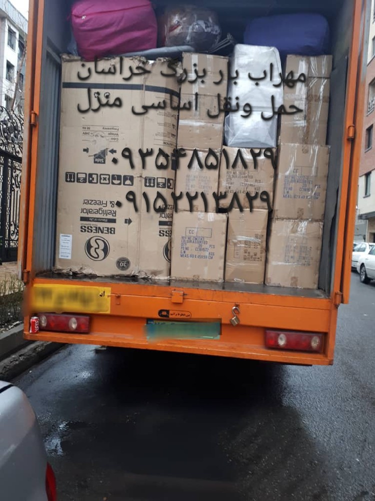 باربری محراب بار بزرگ خراسان حمل ونقل اثاثیه منزل باکارگران مجرب وحرفه ای وماهرومتخصص درپوشش سراسری شهرمشهد وشهرستان اگرکارگرخانم وآقاجهت بسته بندی وچیدمان و نظافتچی نیازداشتی ماهم کارگرخانم وآقا هم داریم همراه با...نیسان....وانت...خاورهای بزرگ و جدید5/5و6متری مسقف وپتودار حمل اثاثیه...شرکتها...اداره جات...تجاری... مدارس...مبلمان...لوازم دانشجو...جهيزيه عروس...سیسمونی نوزاد...آکواریوم.کولربزرگ... گنجه...گاوصندوق...تردمیل...شيشه میزنهاری خوری...کمد...پیانو...سرويس چوب...یخچال ساید...وغیره... بصورت شبانه روزی بدون تعلیلی آماده سرويس دهی میباشید محاسبه زمان ازدرب منزل شماهمشهری عزیز گرامی ارسال بار تمام نقاط ایران خاورهای مسقف بزرگ وجدید تریلی...ده چرخ....تک... بامدیریت آقای روح اله مشمول است بیشتر