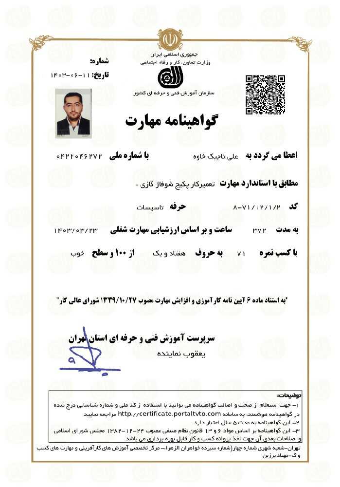 خدمت از ما احراز هویت شده خدمت از ما متخصص (دارای گواهی مهارت)