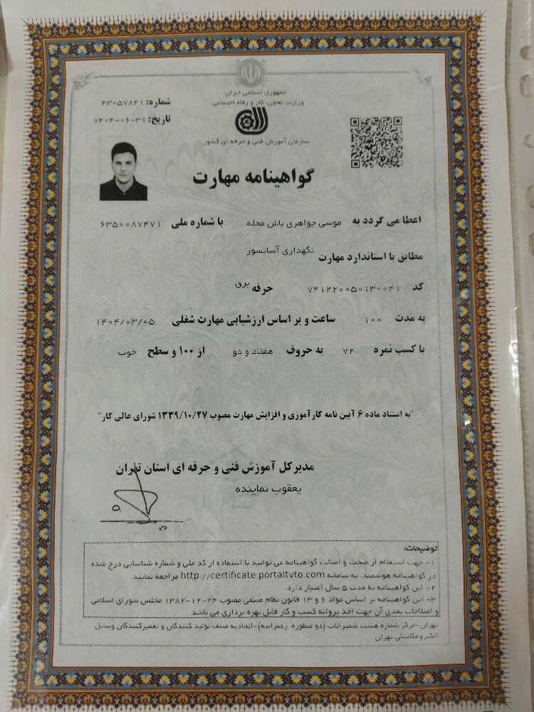 مشتریان بابت رفتار محترمانه ، دستمزد منصفانه ، مهارت و تخصص ، کیفیت انجام کار به موسی جواهری امتیاز مثبت داده اند.