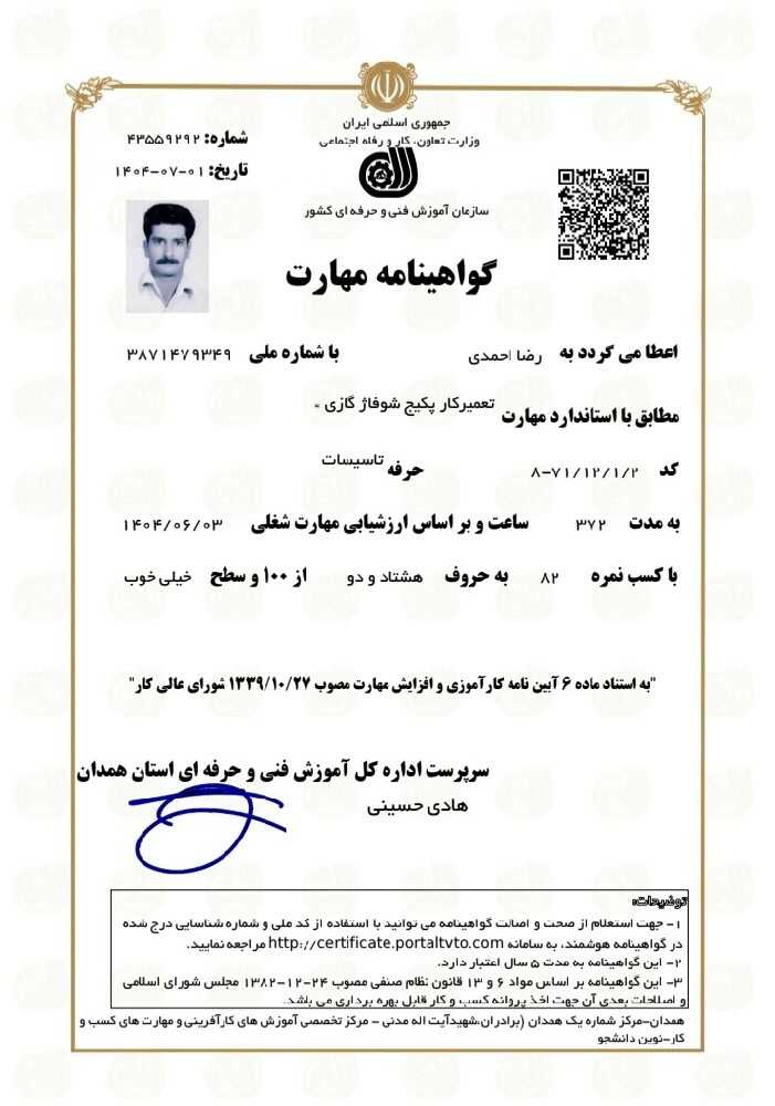 خدمت از ما احراز هویت شده خدمت از ما متخصص (دارای گواهی مهارت)