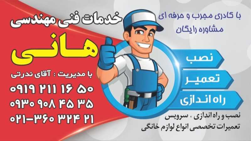 خدمات فنی بصورت حرفه ای، مشاوره رایگان نصب و راه اندازی، سرویس، تعمیرات تخصصی انواع لوازم خانگی کولر آبی معمولی سلولزی وکنترل دار (تعویض پوشال،یاتاقان،پمپ آب،کفی،دینام،تسمه،پروانه روغن کاری) پمپ آب ساختمان ماشین لباسشویی و ظرفشویی، تلویزیون و آنتن تلویزیون آیفون تصویری و صوتی(رفع قطعی صدا یا تصویر، باز نکردن درب) آبگرمکن، آبسردکن، یخچال، جاروبرقی،چرخ گوشت،اجاق گاز،هود،آب تصفیه کن، نصب لوستر، جک آرامبند درب ورودی ساختمان برقکاری، رفع اتصالی، نصب و جابجایی کلید و پریز برق، لوازم طبق بودجه وباهماهنگی، باحوصله ونظرخواهی مشتری خریداری(بافاکتور)میشود، در محل کار و منزل شما بدون نیاز به جابجایی.، با یک بار خدمات از ما مشتری دائم ماخواهید شد، هدف ما جلب رضایت شماست،جهت جلب اعتماد شما خدمات ما دارای گارانتی میباشد بیشتر