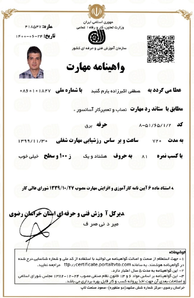 خدمت از ما احراز هویت شده خدمت از ما متخصص (دارای گواهی مهارت)