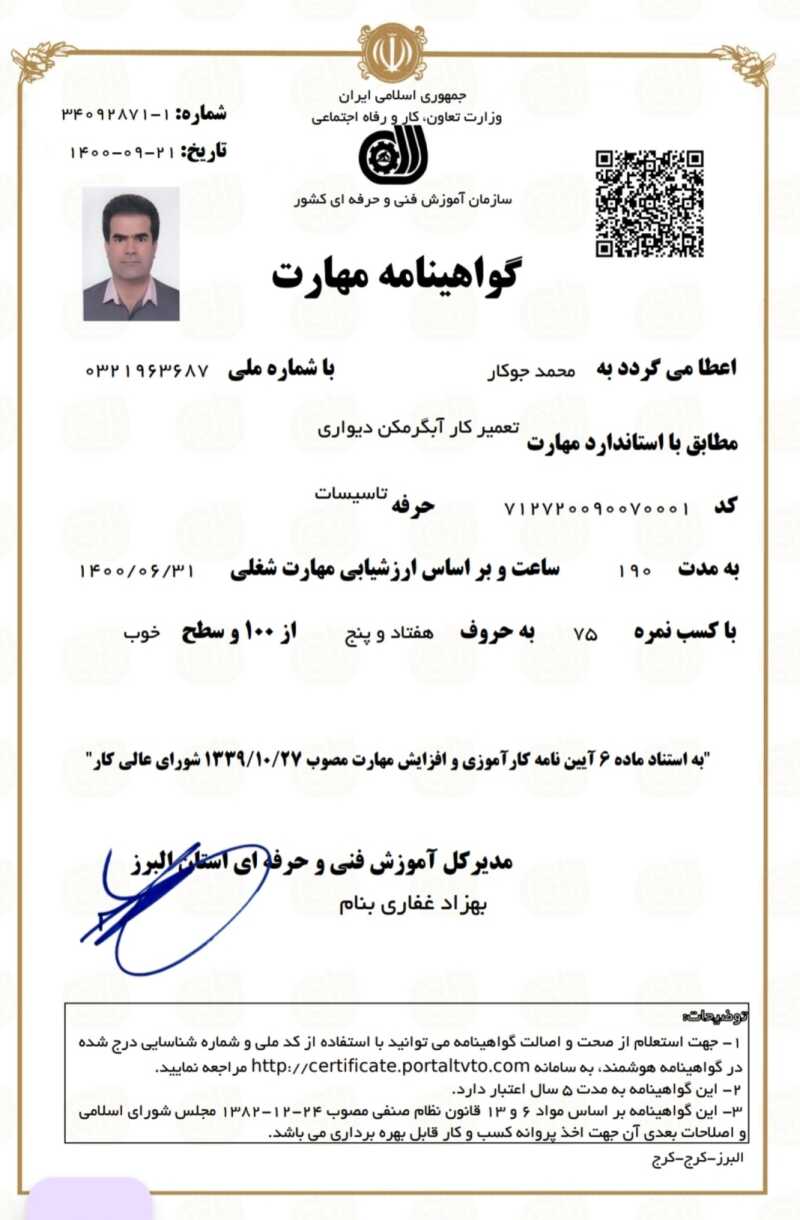مشتریان بابت رفتار محترمانه ، دستمزد منصفانه ، خوش قولی ، کیفیت انجام کار به محمد جوکار امتیاز مثبت داده اند.
