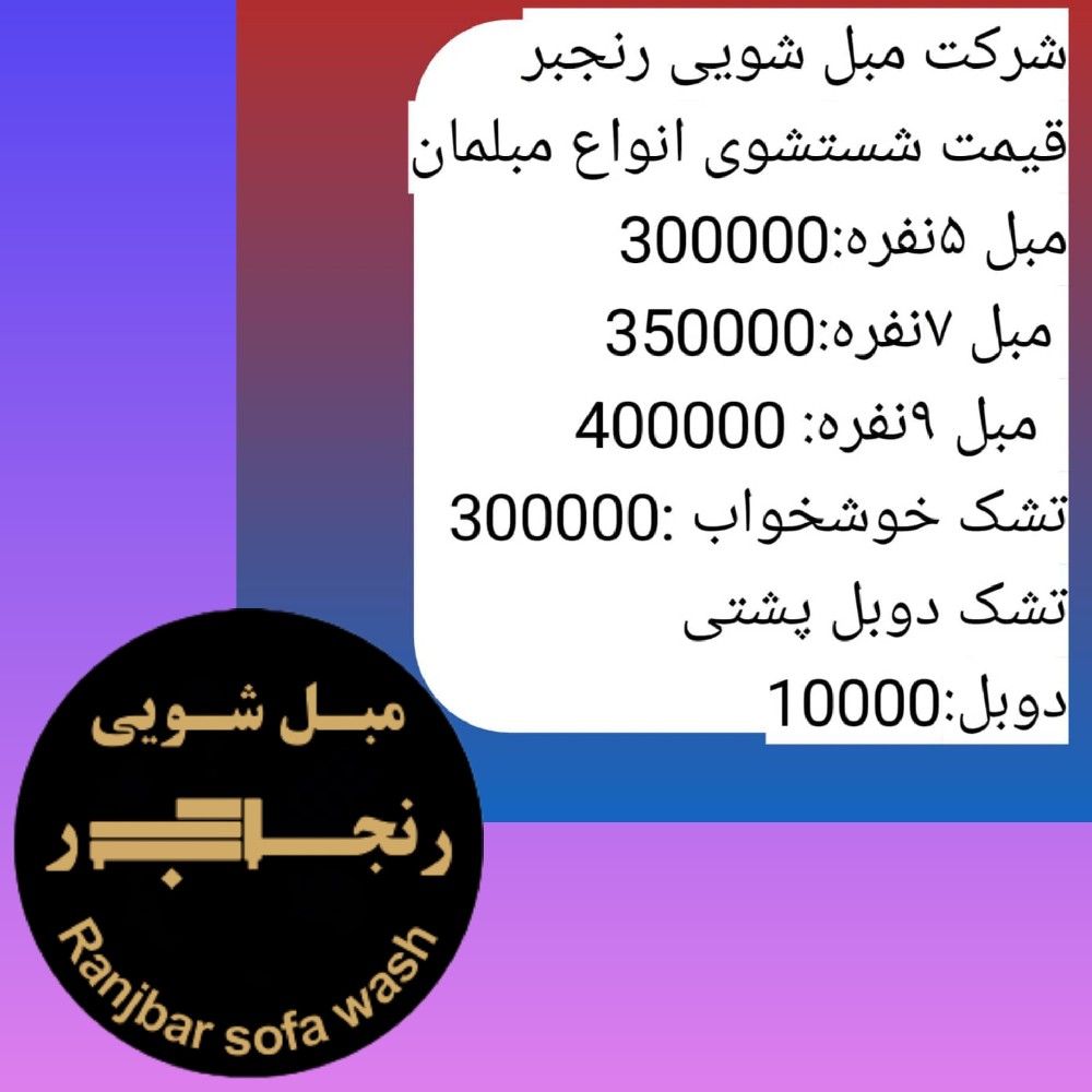 ♠️عضورسمی اتحادیه استان البرز♠️ ♦️ارائه دهنده کلیه خدمات خشکشویی مبلمان درمحل ♦️خشکشویی انواع مبلمان مسکونی.اداری‌.سینماها.رستوان وتالارها ♦️پرسنی مجرب،متعهدوآموزش دیده ♦️ارائه وسرویس دهی خدمات شبانه روزی ♦️استفاده ازبهترین دستگاهای به روز ومکش سه موتوره خارجی ♦️فعالیت هرروزازساعت 8تا23حتی روزهای تعطیل بیشتر