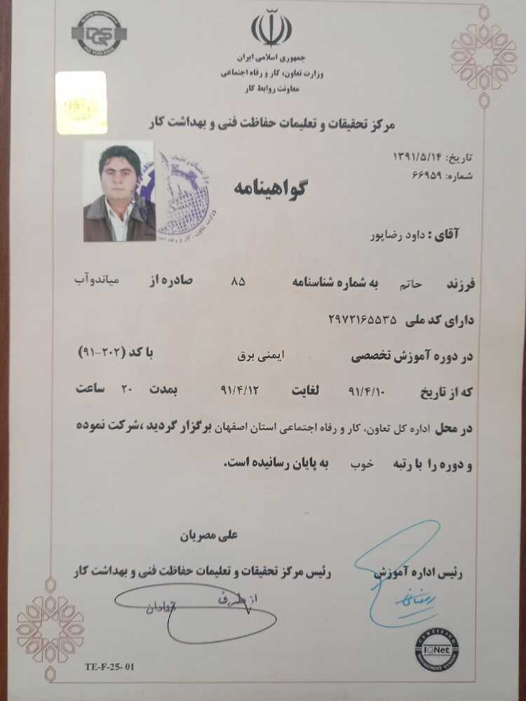 خدمت از ما احراز هویت شده خدمت از ما متخصص (دارای گواهی مهارت)