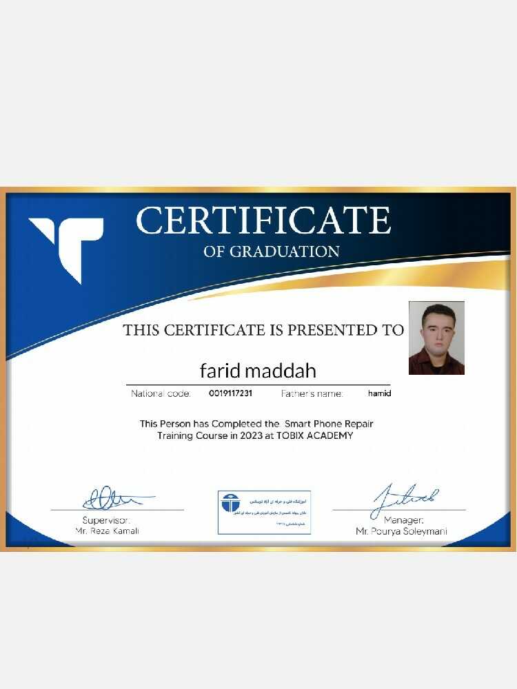 با سلام فرید مداح هستم 29 ساله تضمین داشتن بروز ترین لوازم تعمیرات موبایل و تبلت و ایرپاد و غیره موجود در بازار را دارم چه در مورد میز کار شخصی و چه کیف ابزار همراه اینجانب.✅️ بعد از پایان کار فاکتور رسمی خدمت شما ارائه می‌شود.✅️ دارای کارتخوان سیار جهت راحتی مشتریان گرامی.✅️ بیشتر
