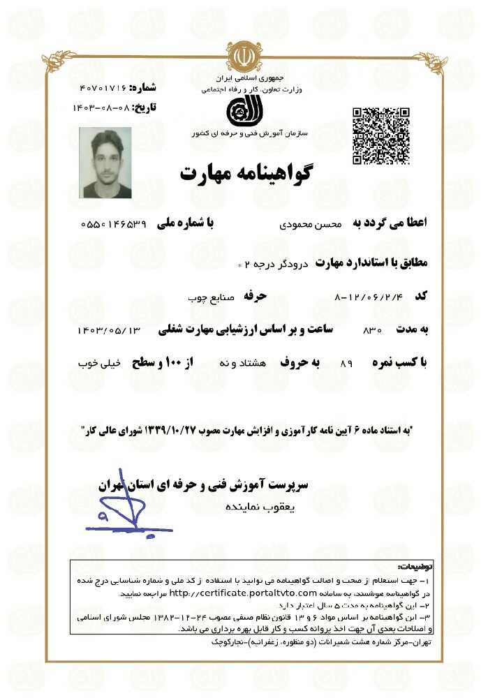 خدمت از ما احراز هویت شده خدمت از ما متخصص (دارای گواهی مهارت)