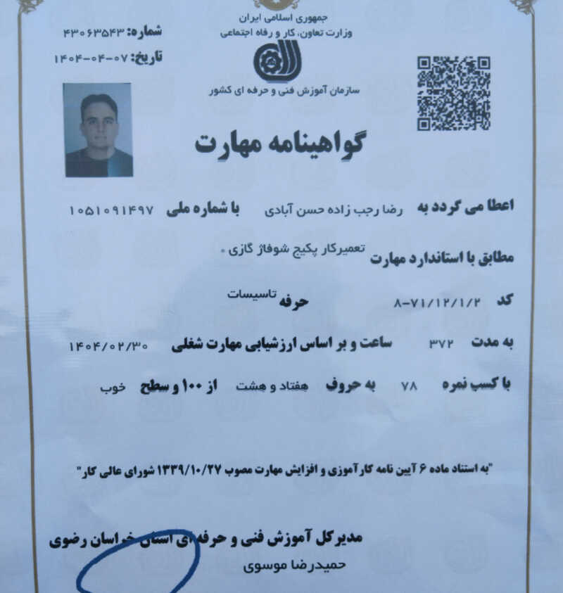 خدمت از ما احراز هویت شده خدمت از ما متخصص (دارای گواهی مهارت)