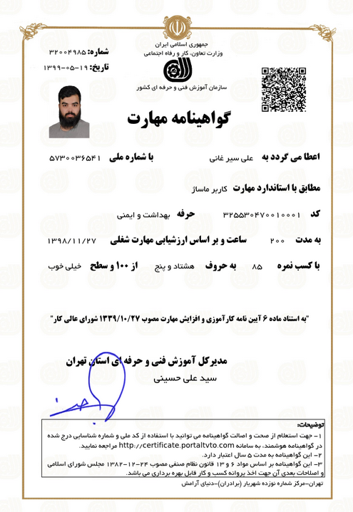 خدمت از ما احراز هویت شده خدمت از ما متخصص (دارای گواهی مهارت)