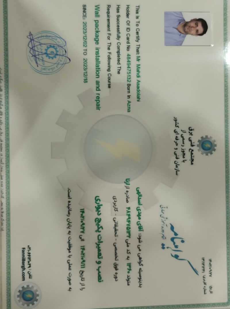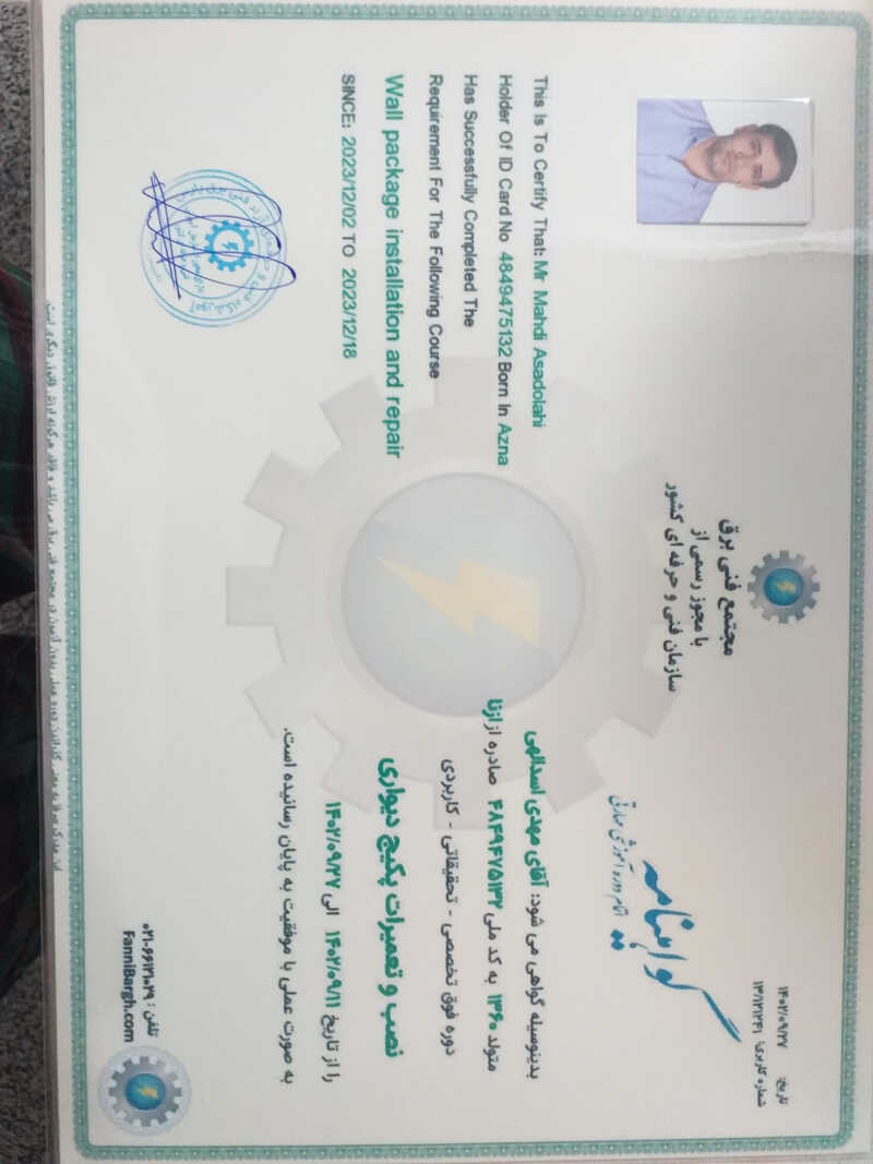 سلام بنده سال هاست بصورت حرفه ای مشغول به کار سرویس پکیچ و آبگرمکن دیواری و رادیاتور میباشم . و دارای دو مدرک تخصصی فنی حرفه ای از وزارت کار و آموزش کشوری میباشم و کار خود را تا شیش ماه ضمانت میکنم .