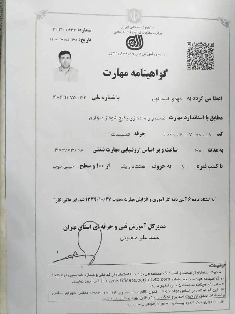 خدمت از ما احراز هویت شده خدمت از ما متخصص (دارای گواهی مهارت)