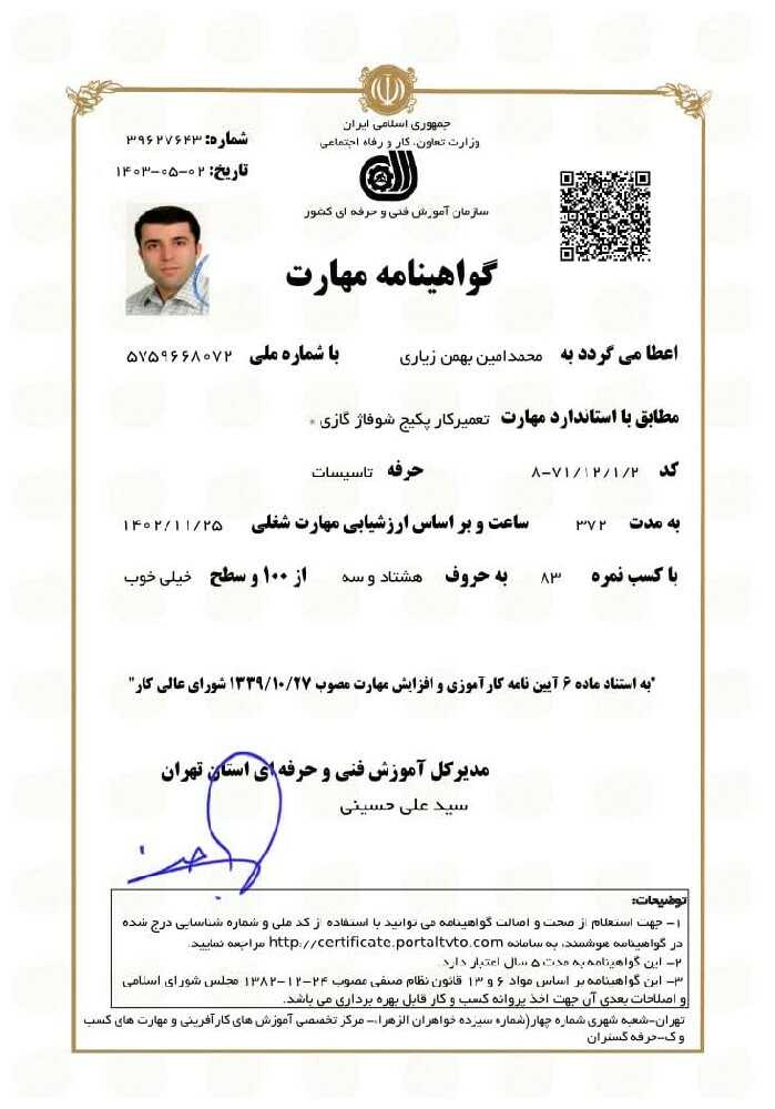 سلام بنده تعمیرکار و نصاب انواع اسپیلت،انواع پکیج و کولر آبی با10 سال تجربه دراین زمینه هستم.هدف من ارائه خدمات باکیفیت واطمینان ازعملکرد بهینه دستگاه شماست. *خدماتی که ارائه میشه: *تشخیص و رفع عی ب:شناسایی سریع ایراد و عیبیابی دقیق*سرویسهای دورهای:انجام سرویسهای دورهای برای افزایش کارایی و طول عمر دستگاه*تعویض قطعات:جایگزینی قطعات فرسوده بااستفاده از قطعات اصلی و با کیفیت*مشاوره و پشتیبانی:ارائه راهنماییهای لازم برای استفاده بهینه ونگهداری صحیح*نصب و راهاندازی:نصب و راهاندازی با رعایت استانداردهای فنی. اگر به خدمات مطمئن و کارآمد در زمینه تعمیرات نیاز دارید در کمترین زمان آماده خدمت هستم.در صورت سوال یا نیاز به هماهنگی،خوشحال میشم گفتوگویی تلفنی با شما داشته تا در سریعترین زمان ممکن ، بهترین خدمات را ارائه دهم یا از طریق مشاوره و راهنمایی و بدون نیاز به مراجعه،ایراد دستگاه را برطرف کنم. ممنون از وقتی که برای مطالعه این متن صرف کردین. بیشتر