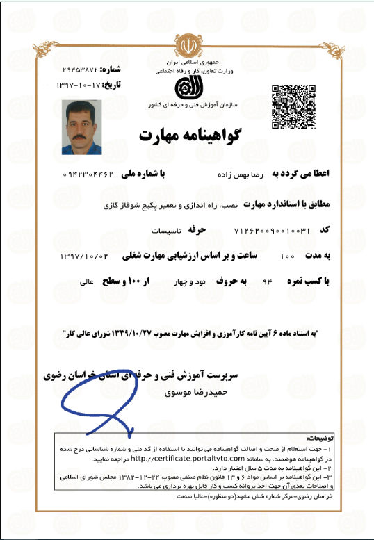 خدمت از ما احراز هویت شده خدمت از ما متخصص (دارای گواهی مهارت)