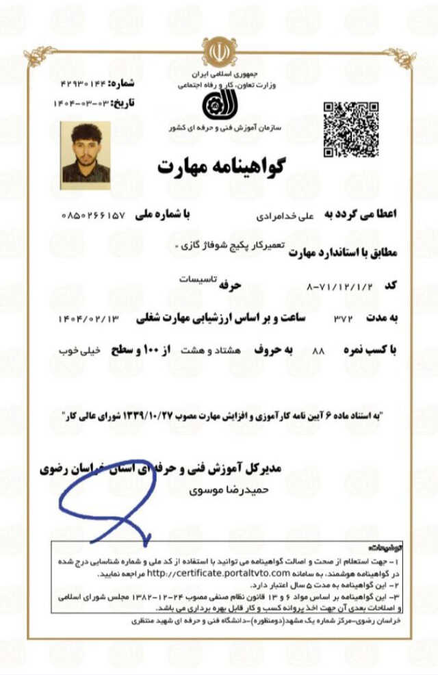 خدمت از ما احراز هویت شده خدمت از ما متخصص (دارای گواهی مهارت)