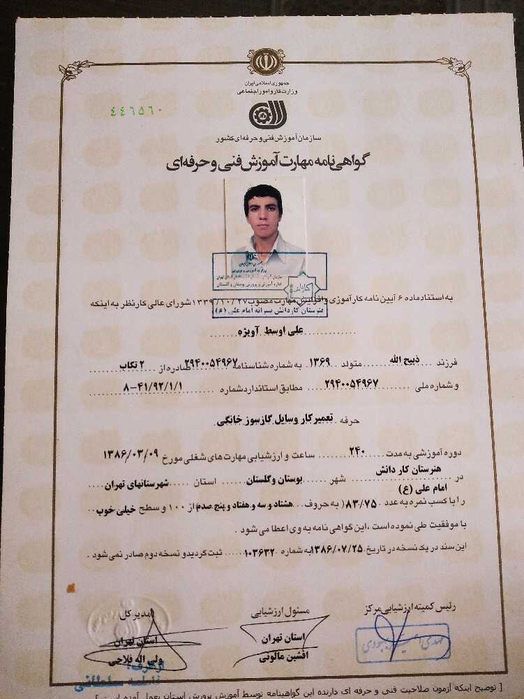 دریافت مدرک معتبر تعمیر لوازم خانگی گاز سوز از فنی حرفهای ی سال گارانتی قطعات تعویض شده انجام. کار در سریع ترین زمان ممکن