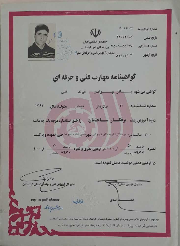 خدمت از ما احراز هویت شده خدمت از ما متخصص (دارای گواهی مهارت)