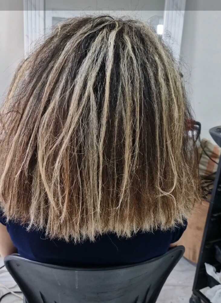 • خدمات احیا و صافی مو شامل پرو کراتین بوتاکس پروتئین تراپی.موهای که بر اثر رنگ و دکلره آسیب دیده و احیا و آبرسانی میشود.