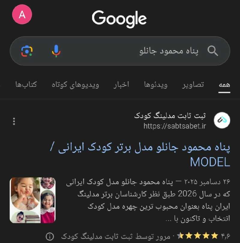 من مدیرعامل اصلی کمپانی ثبت ثابت هستم گوگل سرچ کنید " مدل برتر کودک " سایت ها رو چک کنید ؛ آژانس مدلینگ کودک ثبت ثابت رتبه اول هست در ایران در زمینه مدلینگ کودک نمونه رزومه بهترین و شناخته شده ترین م دل های کودک ایرانی که با ما همکاری دارند رو میتونید گوگل سرچ کنید ببینید - دلوین نیک رضایی - پرنسا قمری - اهورا مسعودی - روژدا ظفری - دیانا قناعتی - نیلارز شهبازی - آناشید کیفری - نورا همتی - آرسام خوش فطرت - مانلی مصطفوی و بیش از 14 هزار مدل فعال کودک که همشونو میتونید از سایت ببینید کمپانی ثبت ثابت درواقع مربوط به فقط مدلینگ کودک نیست و زیر مجموعه های خیلی گسترده ای داره و تمامی خدماتی که در شاخه های مختلف خصوصا تبلیغات و مدلینگ بخواید بهتون ارائه میکنه با تضمین اینکه اول کار براتون انجام میشه و درصورت رضایت بعد از انجام کار پرداخت انجام میشه ✅ تمامی خدماتی که در لیست هستند براتون انجام میشه در کمترین زمان بیشتر