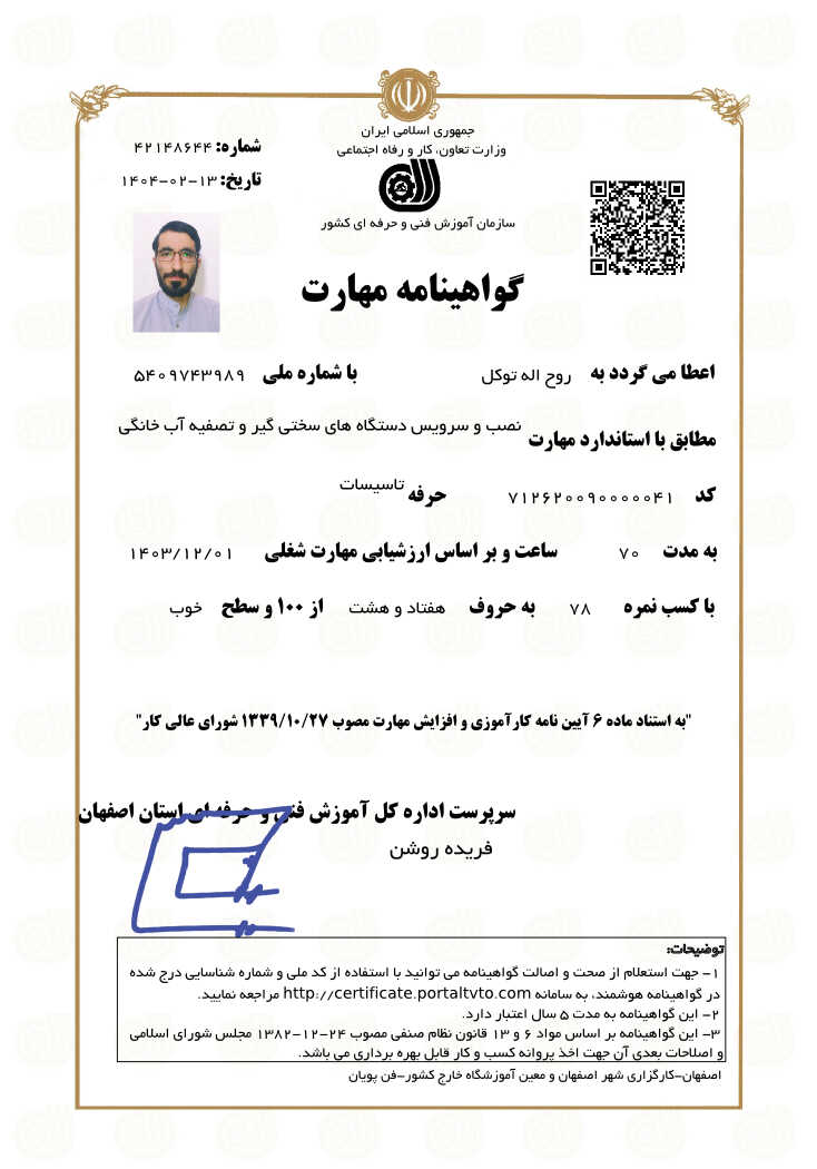 خدمت از ما احراز هویت شده خدمت از ما متخصص (دارای گواهی مهارت)