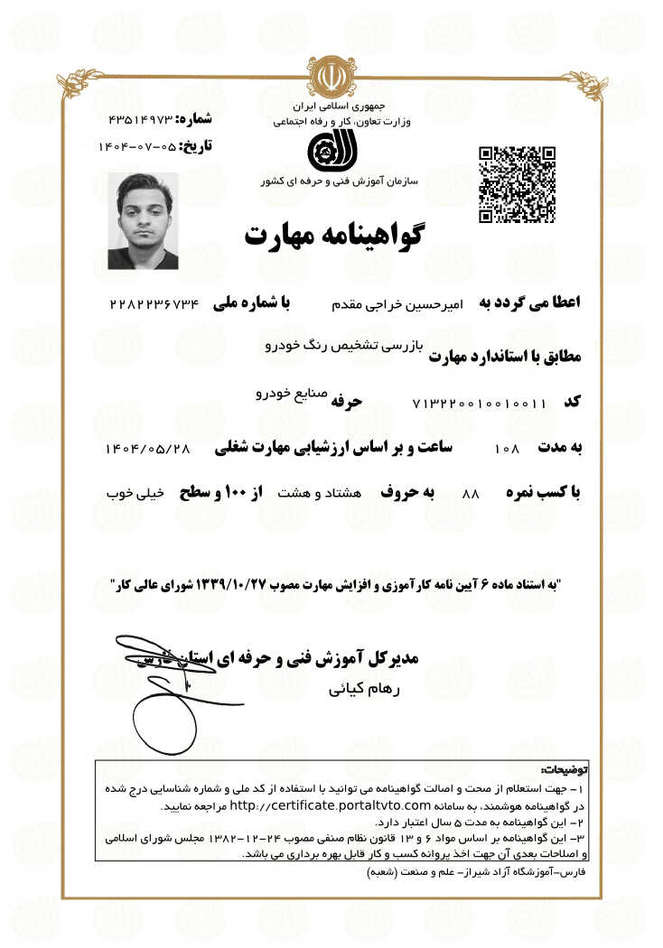خدمت از ما احراز هویت شده خدمت از ما متخصص (دارای گواهی مهارت)