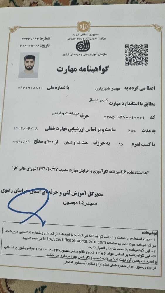 خدمت از ما احراز هویت شده خدمت از ما متخصص (دارای گواهی مهارت)