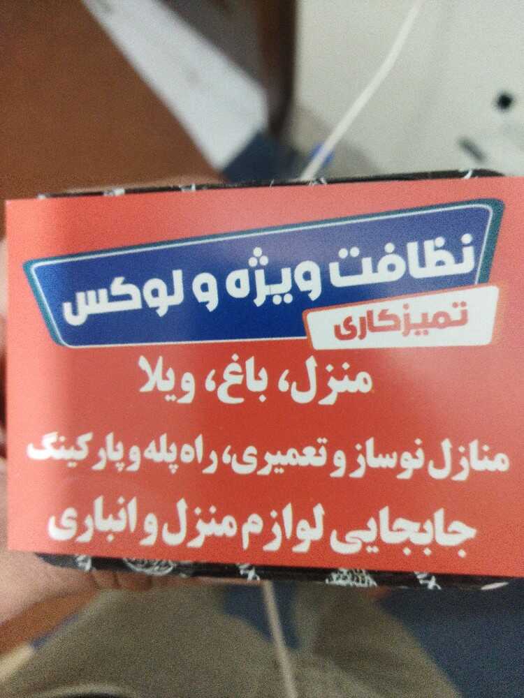 (سلام) ، نظافت ویژه و لوکس. گردگیری،دیوارشویی،شستن سقف،فرش،موکت،مبل،سرویس بهداشتی،حمام،تراس ،ظروف آشپزخانه ،کف،تی وجارو، جاروبرقی ،باز کردن پرده ها و نصب آنها ،شامپوفرش جهت شستن فرش ومبل،تمیز کردن ش یشه،کابینت،کمد،در،کاغذدیواری،پارکت،لوستر، کلیدوپریز. نظافت باغ،ویلا،استخر، منازل نوساز وتعمیری، جابجایی لوازم منزل و انباری، نظافت راه پله،پارکینگ،نرده،آسانسور،حیاط،پشت بام،لابی،شیشه سکوریت، باغچه. با 8سال سابقه کار. بیشتر