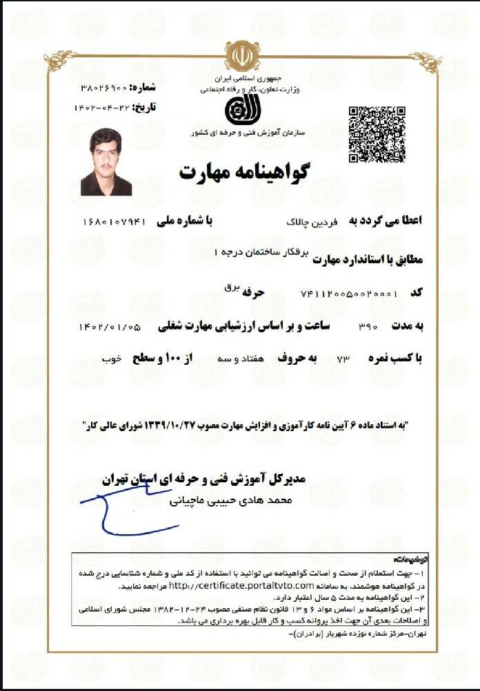 خدمت از ما احراز هویت شده خدمت از ما متخصص (دارای گواهی مهارت)