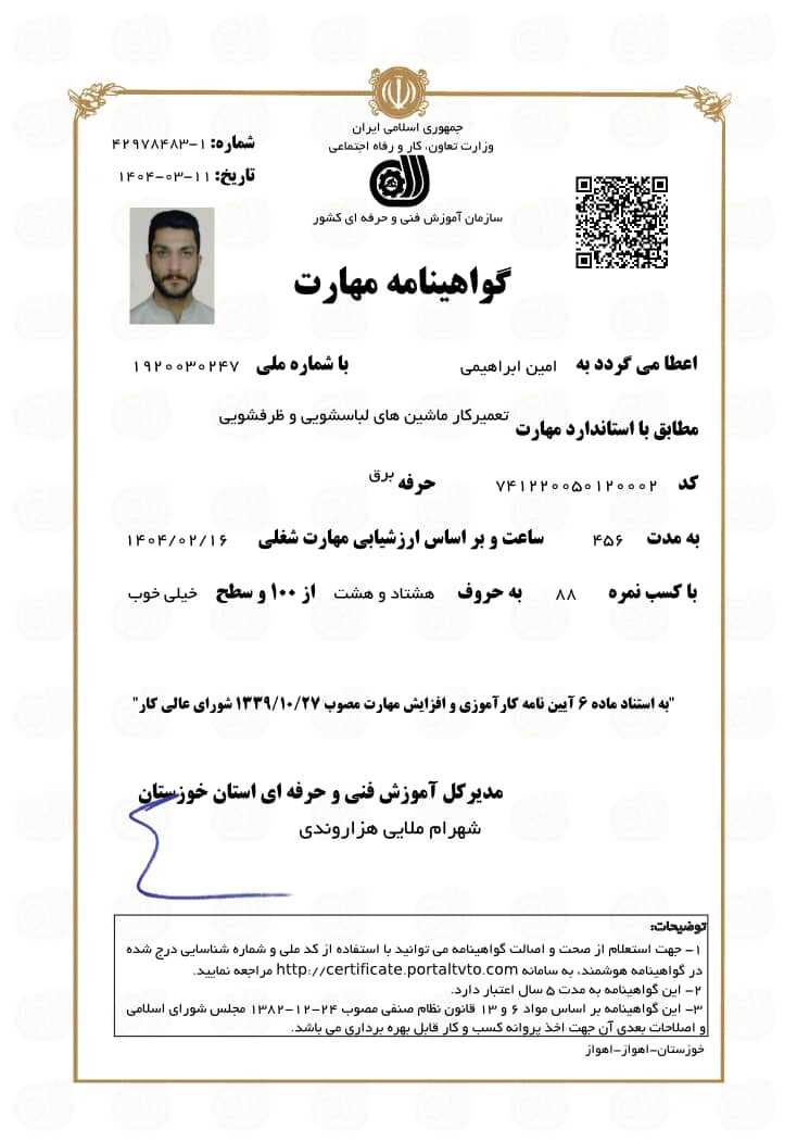 با سلام بنده مهندس الکترونیک هستم دارای مدرک کارشناسی الکترونیک و بیش از 7 سال سابقه نصب و تعمیرات انواع برد و لوازم خانگی .دارای مدرک معتبر از سازمان فنی حرفه ای کشور در زمینه تعمیر لوازم خانگی و همچ نین تعمیر برد به صورت تخصصی هستم کار تضمین شده و با ضمانت تحول مشتری داده میشود بیشتر