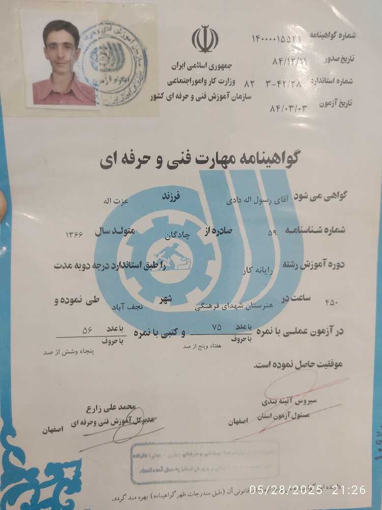 خدمت از ما احراز هویت شده خدمت از ما متخصص (دارای گواهی مهارت)