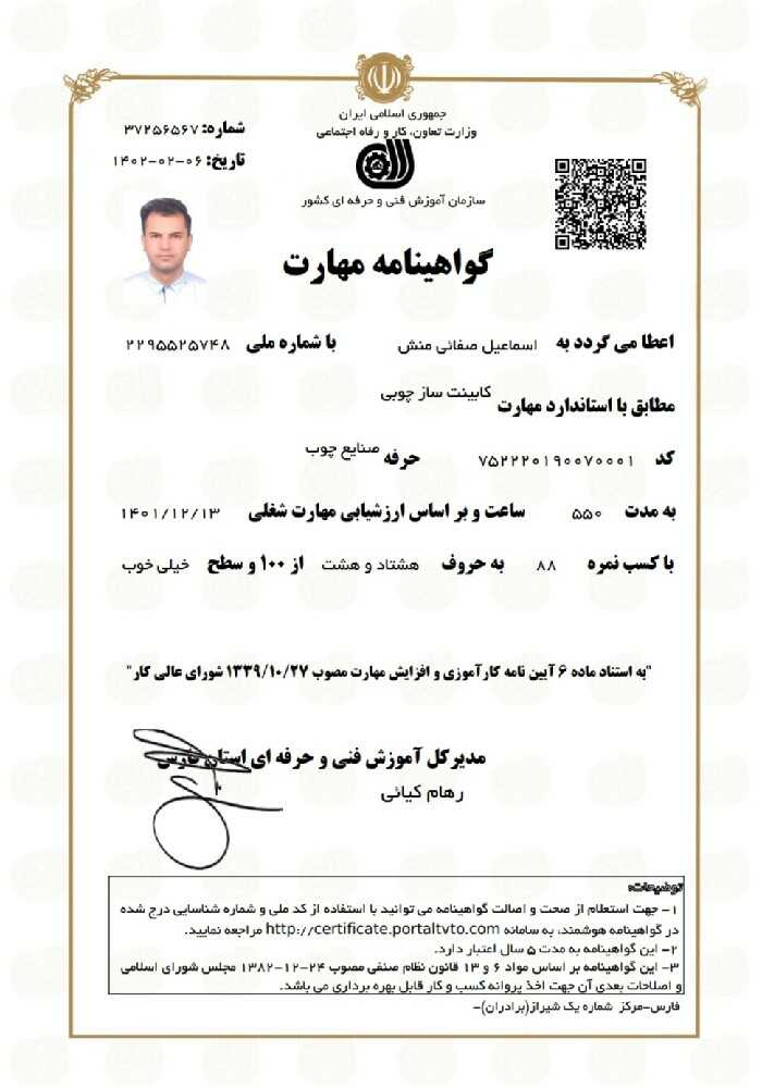 خدمت از ما احراز هویت شده خدمت از ما متخصص (دارای گواهی مهارت)