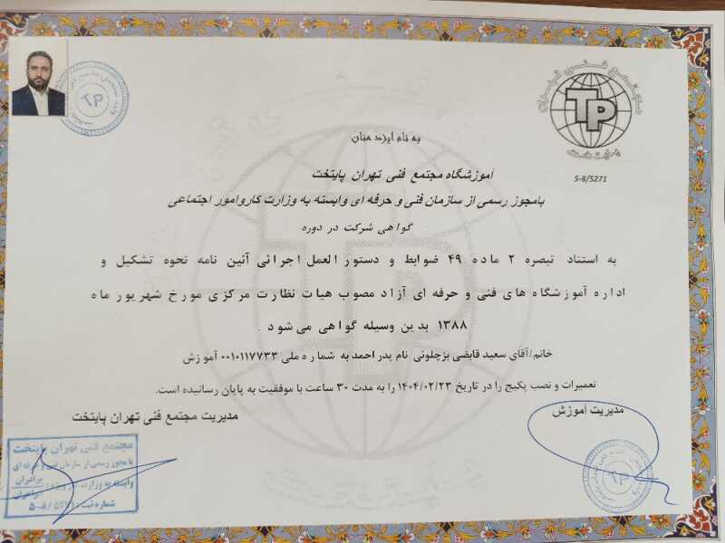 خدمت از ما احراز هویت شده خدمت از ما متخصص (دارای گواهی مهارت)