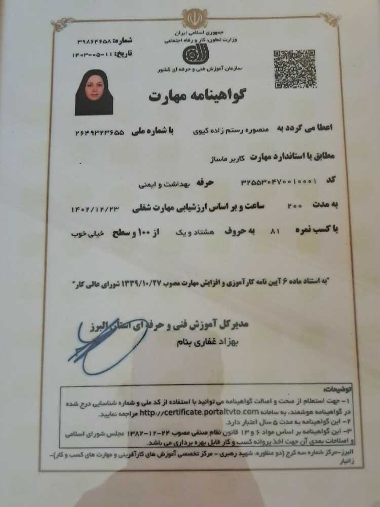 مطابقت کد ملی و شماره موبایل این متخصص با استعلام از سامانه شاهکار تایید شده است.