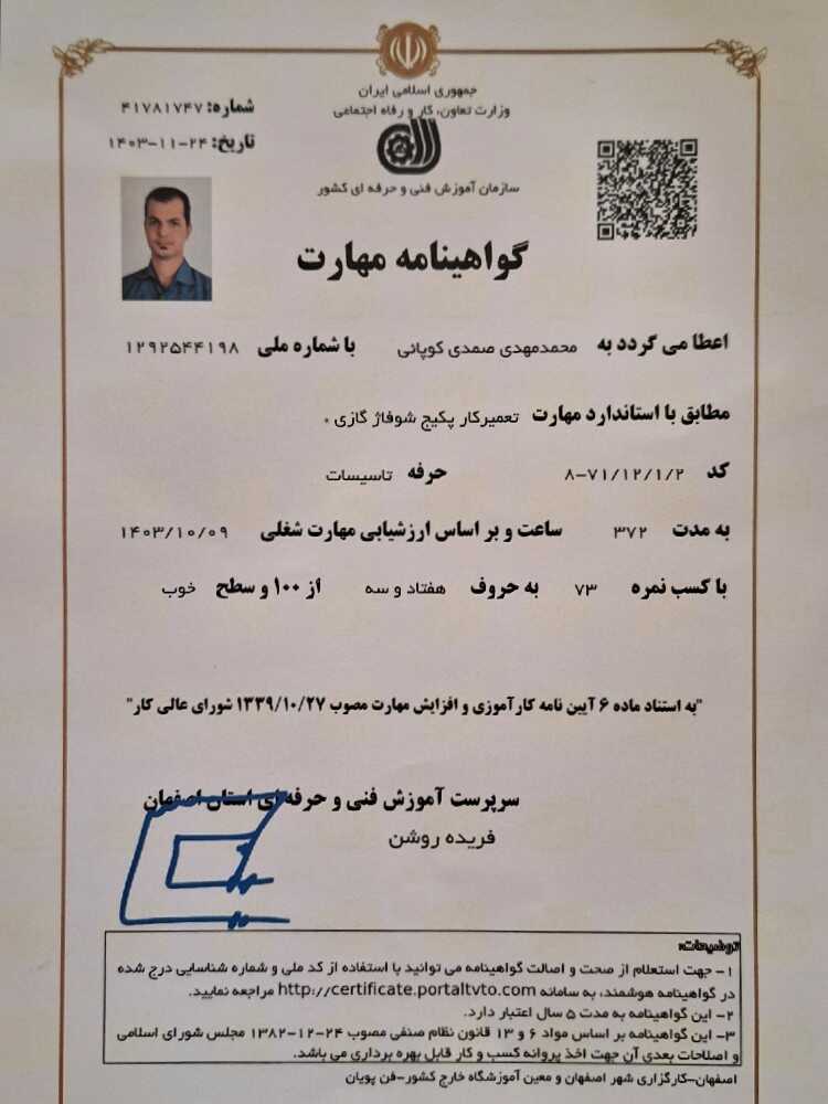 مطابقت کد ملی و شماره موبایل این متخصص با استعلام از سامانه شاهکار تایید شده است.